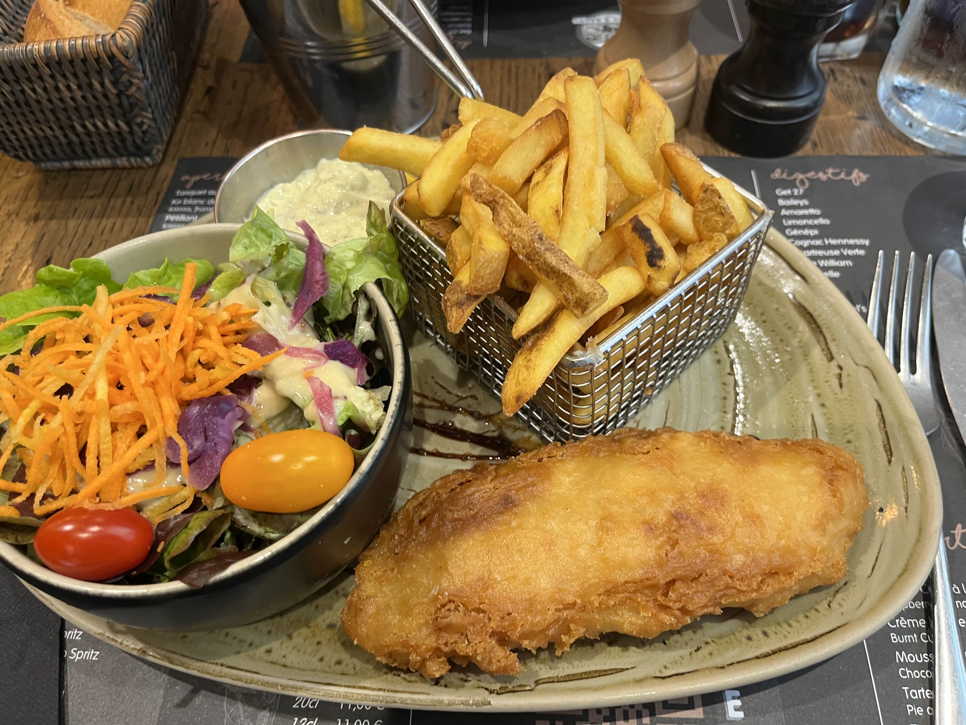 안시 구시가지에 위치한 레스토랑으로 퐁듀, 라클렛, 햄버거, 샐러드 등 메뉴를 판매하고 있었고 내가 시킨 메뉴는 피쉬 앤 칩스와 시저 샐러드였다.!