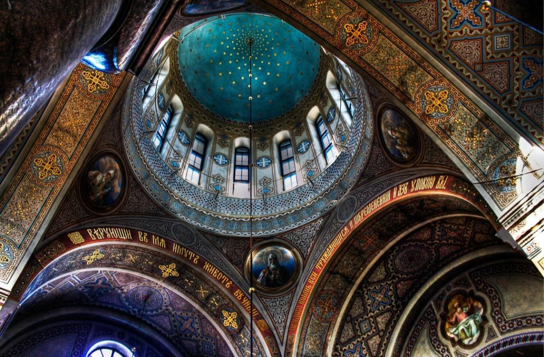 성당 내부는 정교회 전통에 따라 화려하게 장식되어 있으며, 아름다운 성화와 황금 장식들이 돋보입니다.