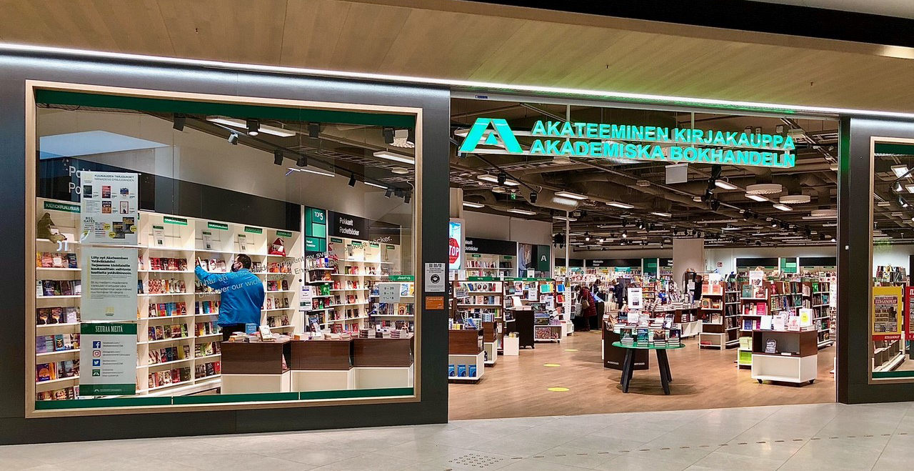 서점 내부는 넓고 밝은 공간으로 되어 있으며, 독특한 나선형 계단과 깨끗한 북유럽 디자인이 돋보입니다. 다양한 분야의 책이 구비되어 있으며, 핀란드 문학, 스칸디나비아 디자인, 에술 서적, 여러 언어의 책들도 구매하실 수 있습니다.