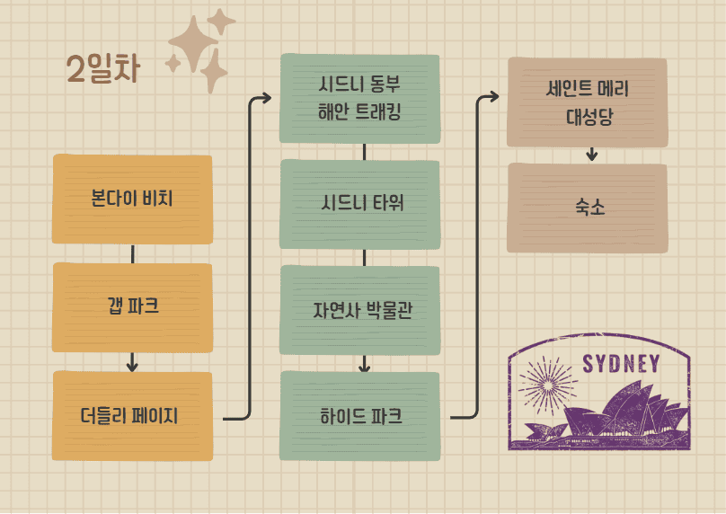✓ 2일차 : 본다이 비치 - 갭 파크 - 더들리 페이지 - 시드니 동부해안 트래킹 - 시드니 타워 - 자연사 박물관 - 하이드 파크 - 세인트 메리 대성당