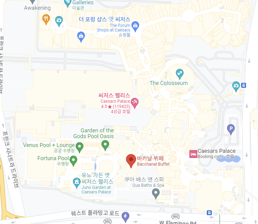 인근 플라밍고 호텔에 주차하고 뷔페로 호다닥 달려갔습니다.
