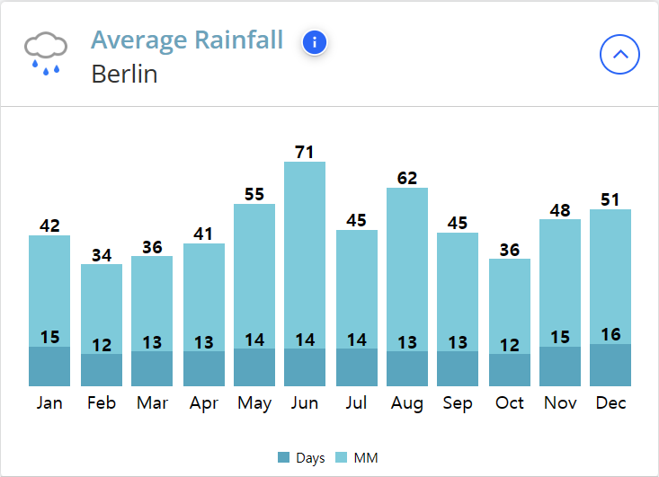 비가 가장 많이 오는 계절은 12월로 평균 강수량은 51mm입니다.