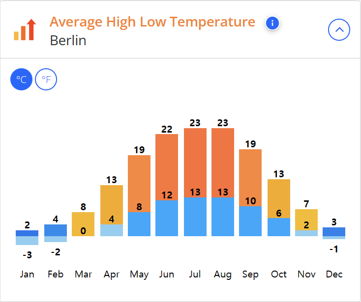 독일의 여름 기온은 23℃이며, 겨울은 -3℃ 입니다.