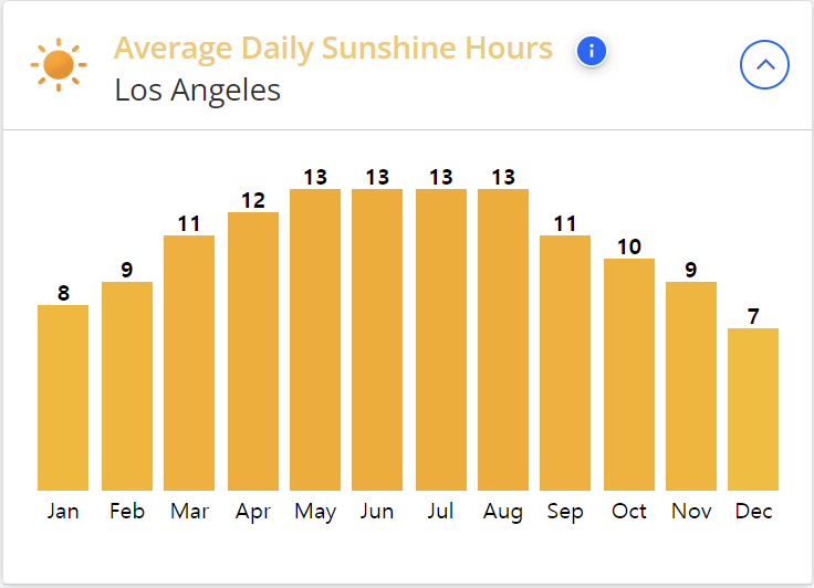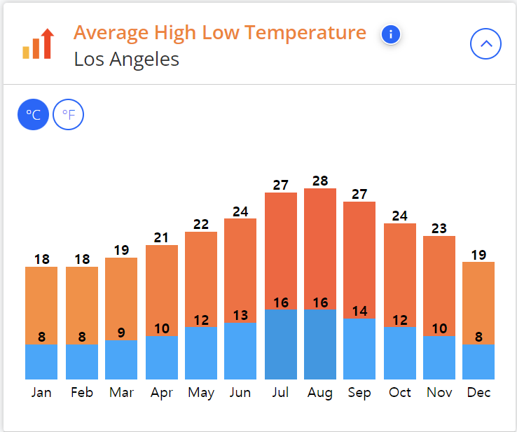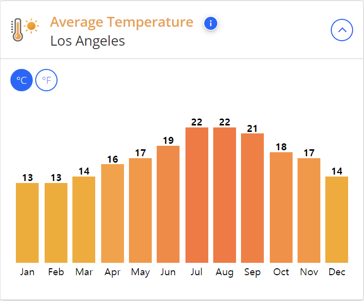 로스엔젤스는 사막 기후영향을 받는 도시로 낮에는 따가운 햇빛이 강렬하며, 저녁에는 선선한 기온을 가지고 있습니다.
