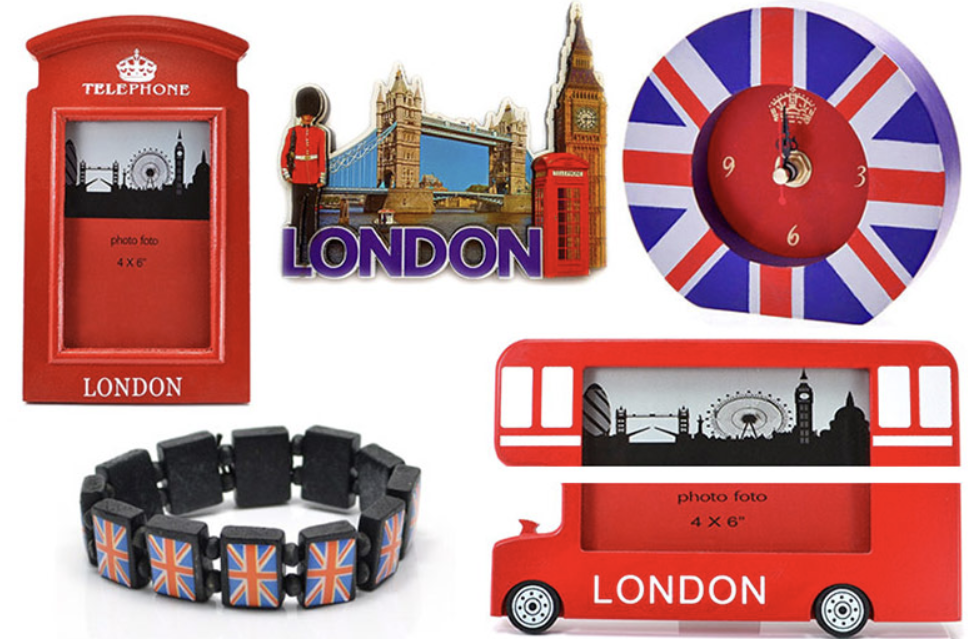 : 영국의 상징들이 담긴 마그넷, 시계, 컵, 열쇠고리, 미니어쳐 등 다양한 상품은 저렴한 가격에 구매 가능한 기념품입니다.