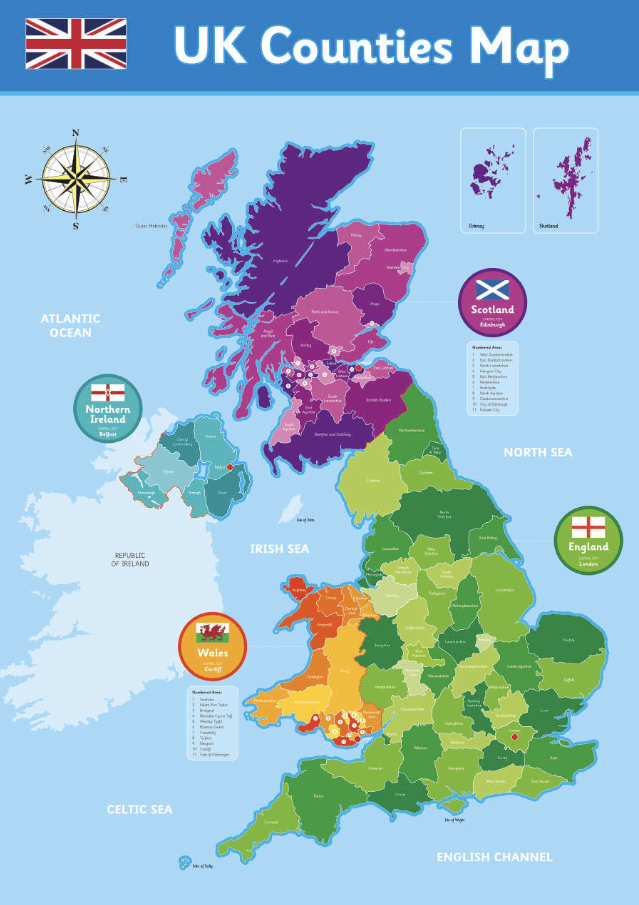 영국은 유럽 대륙의 북서쪽에 위치한 섬나라로, 잉글랜드, 스코틀랜드, 웨일스, 북아일랜드 4개의 구성국이 연합해 형성된 단일 국가입니다.