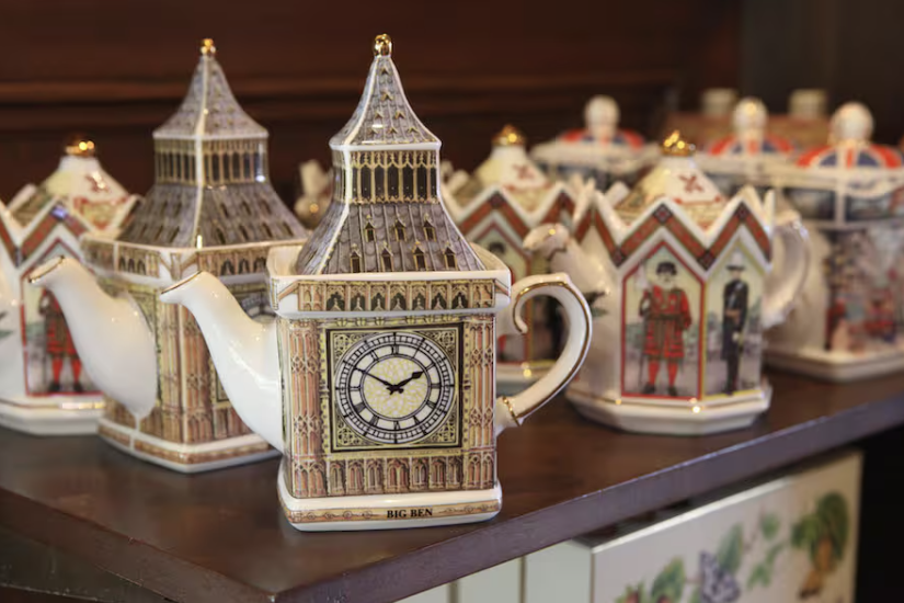 : 전국민이 티를 즐겨마시기 때문에, 찻주전자 또한 다양한 제품이 판매되고 있습니다. 영국의 상징 빅밴 모양의 찻주전자부터 고급브랜드의 찻주전자까지, 선물하기 좋은 기념품입니다.