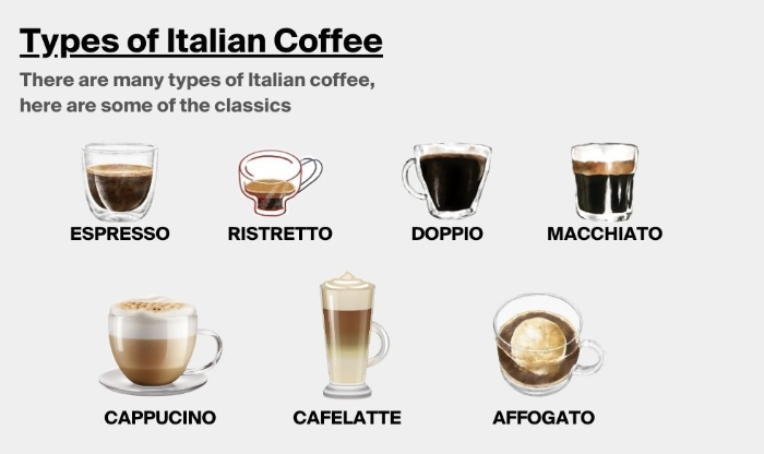 이탈리아는 커피에 대한 자부심과 문화가 풍부한 나라로, 다양한 커피 종류가 있습니다.
