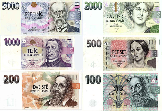체코는 자국통화인 코루나 CZK를 사용하며, 지폐는 20, 50, 100, 200, 500, 1000, 2000, 5000 단위로 이루어져있으며,