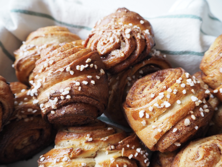 시나몬 롤 Pulla와 카렐리아 지방의 아침 빵 카르아란피라카를 즐겨보세요.