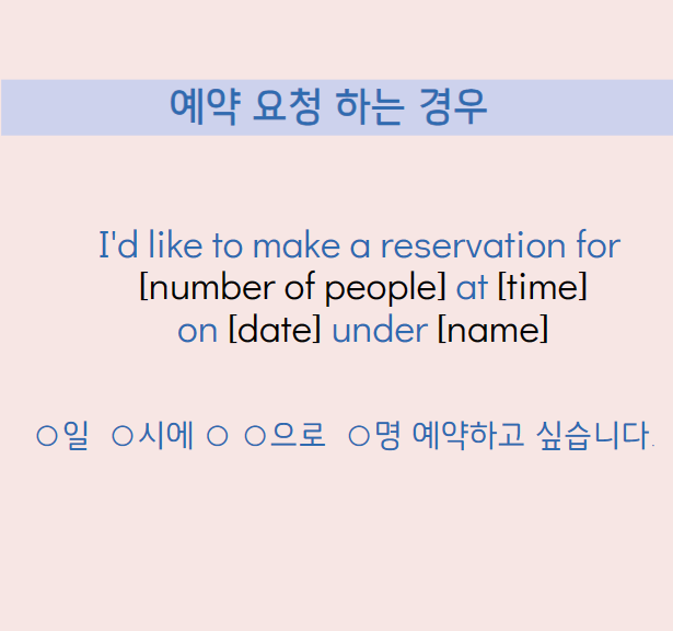 예약, 문의, 대기 경우 사용할 수 있는 표현으로 필수 표현만 담아두었으니, 해외 여행 시 유용하게 사용하세요 : )