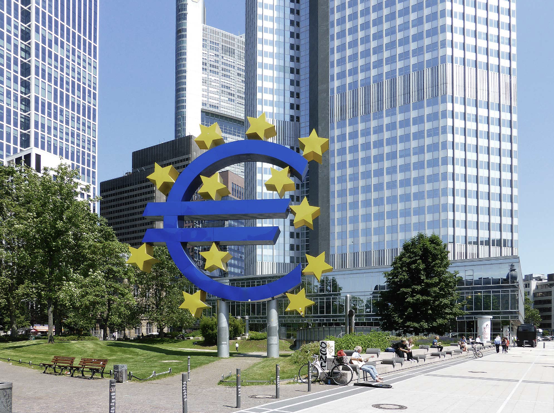 유럽중앙은행 ECB가 있는 40층 건물로, 대형 유로화 조형물 앞에서 사진을 찍으면 부자가 된다는 전설이 내려옵니다.