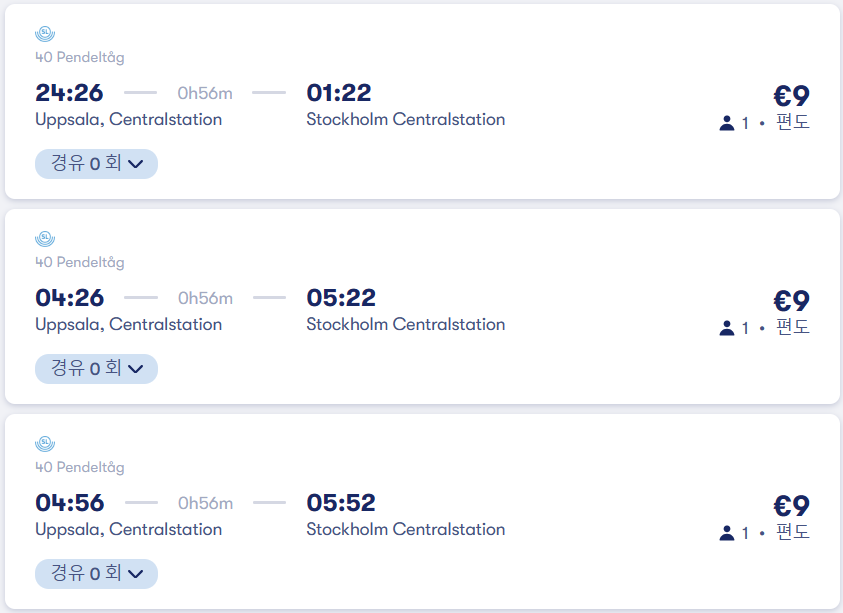 * 스톡홀름 → 웁살라