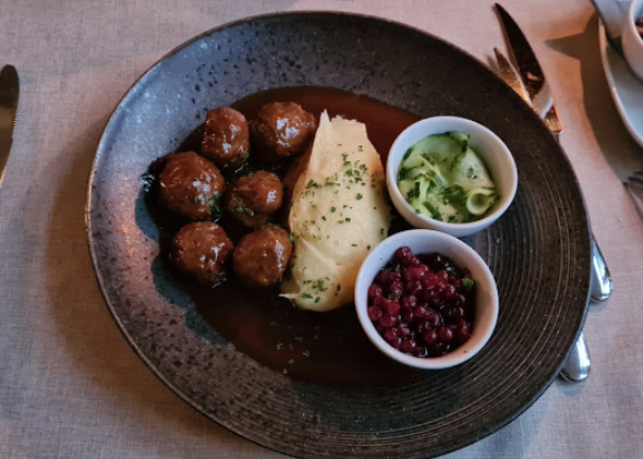 모던한 분위기의 스웨덴 레스토랑으로 쇠고기 타르타르, 슈니첼, 대구 요리, 와인을 즐기실 수있습니다.