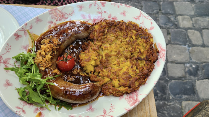 메뉴는 수제 소시지와 독일식 감자전인 뢰스티를 판매하며, 립 아이 스테이크, 비건 음식, 스프,