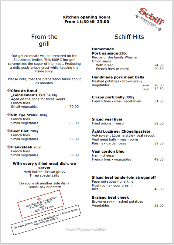 루체른에 위치한 정통 스위스 특선요리와 맛있는 고기 요기를 제공하는 레스토랑입니다.