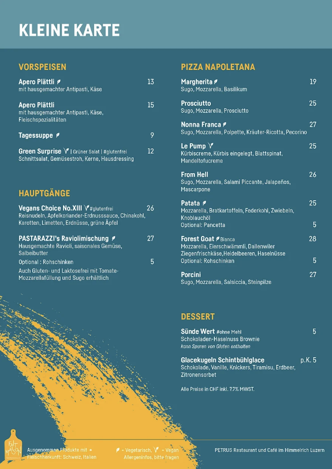 루체른에 위치한 레스토랑으로 홈메이드 라비올리와 나폴리탄 피자가 인기 메뉴이며 채식주의자를 위한 음식과 글루텐 프리 메뉴도 준비되어 있습니다.