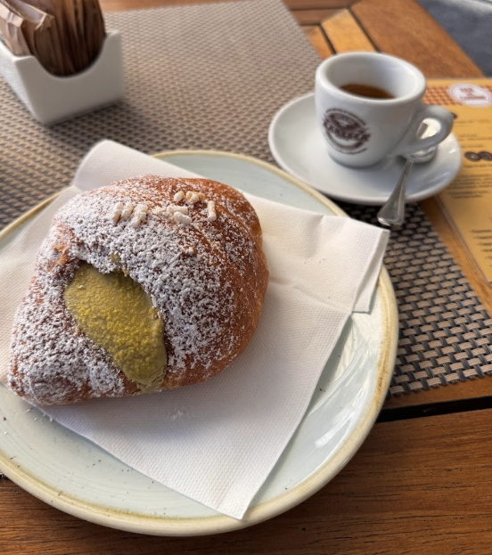 페이스트리와 카푸치노, 에스프레소, 브루스케타, 캌테일을 즐길 수 있는 카페입니다.