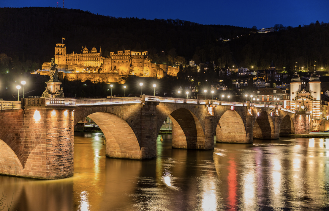 하이델베르크 성을 배경으로 멋진 야경을 볼 수 있는 다리로 다리에는 아테네 여신상, 테오로드와 같은 다양한 조각상이 있습니다.
