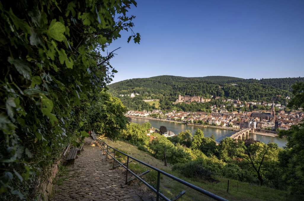 철학자들이 영감을 얻기 위해 걸었떤 산책로로 철학자의 길에서 내려다보는 하이델베르크 성과 구시가지의 모습은 매우 아름답습니다.