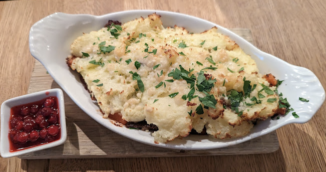 넙치구이, 오븐구이 연어, 해믈 스튜, 순록 스튜, 순록 파이, 치즈 샌드위치 등의 메뉴로 구성되어 있습니다.