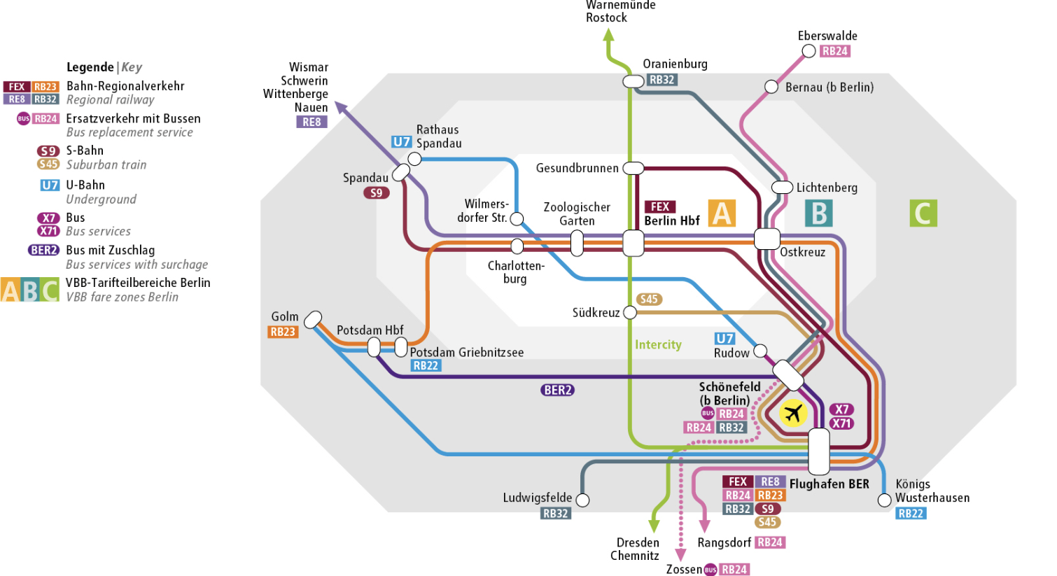 브란데브르크 공항은 Zone C 구역으로, 베를린 시내로 이동 시 ABC Zone 티켓이 필요합니다.