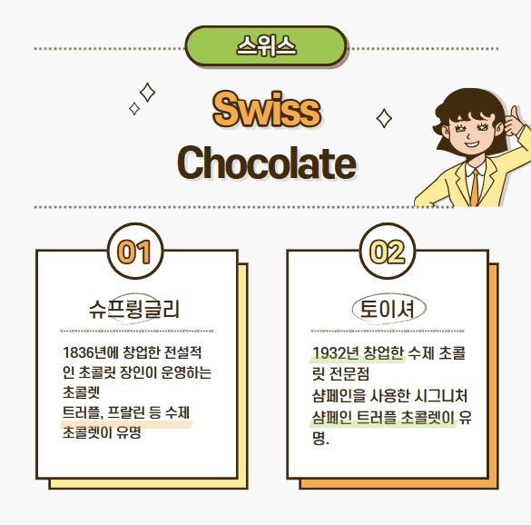 시계적으로 유명한 스위스 초콜릿은 슈퍼마켓이나