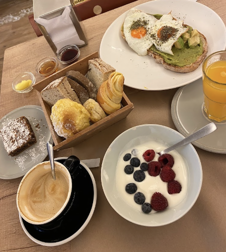 레드벨벳 초코 크루와상과 팬케이크, 브런치, 오픈 샌드위치 등을 맛볼 수 있는 카페입니다.