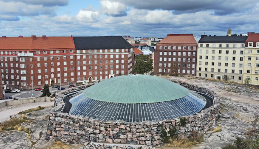 천장과 외벽 사이 유리창을 통해 자연광이 들어오도록 설계되어 있으며, 내부는 천연 암석의 느낌을 그대로 살리고 있습니다. 이곳은 음악회, 결혼식 등이 자주 열리는 곳으로 헬싱키의 일상을 보실 수 있습니다.