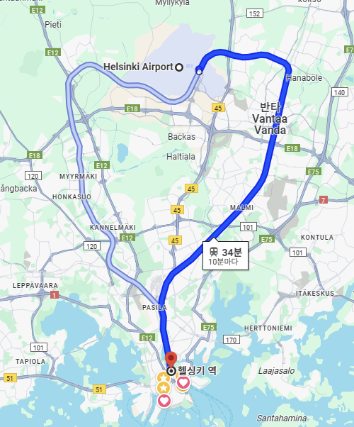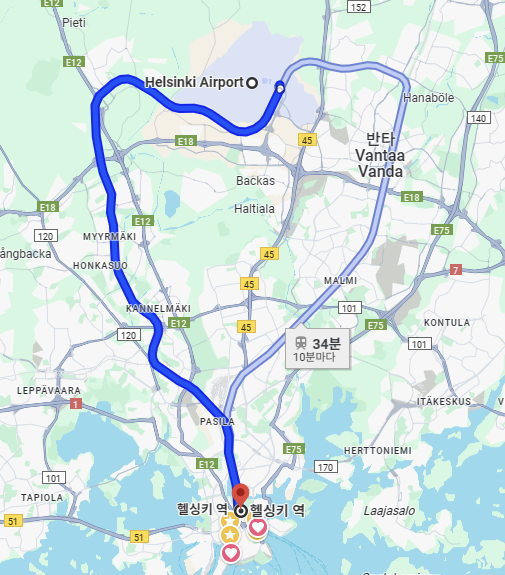 - 소요 시간 : 공항에서 헬싱키 중앙역까지 1시간 소요