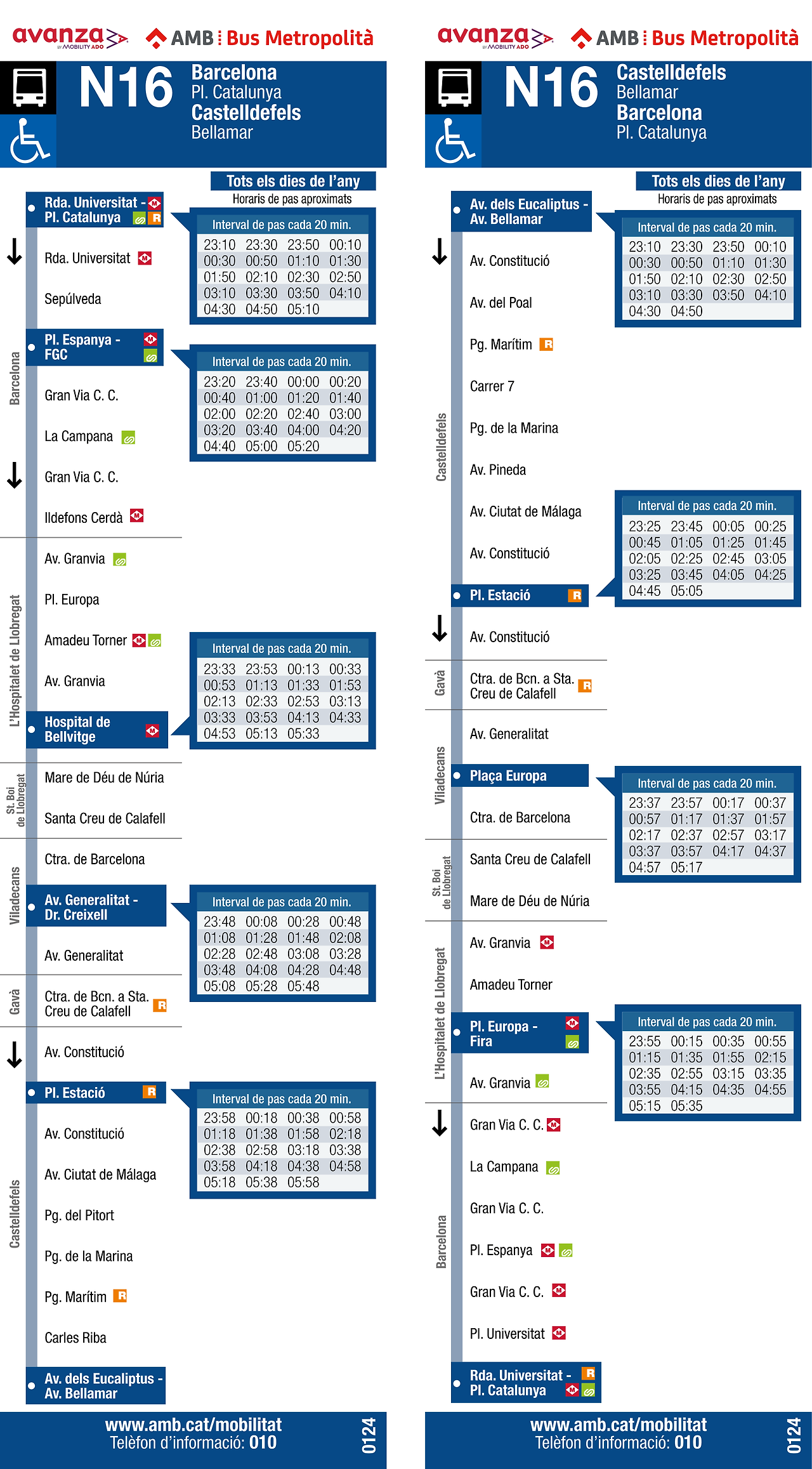 새벽 4시 50분부터 오후 11시 50분까지 15분~20분 간격으로 운행되는 버스입니다. 에스파냐 광장까지 약 35분 소요됩니다.