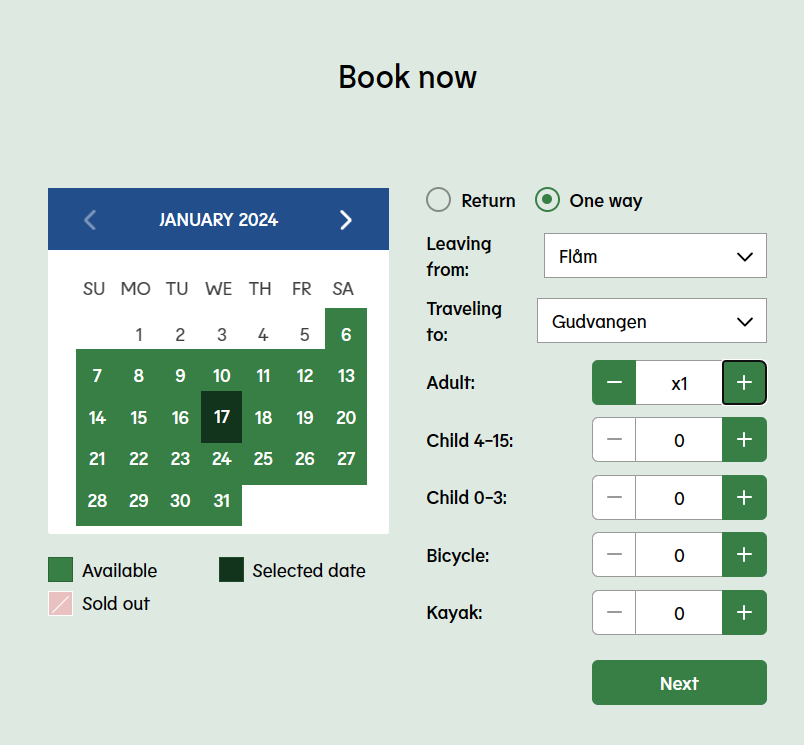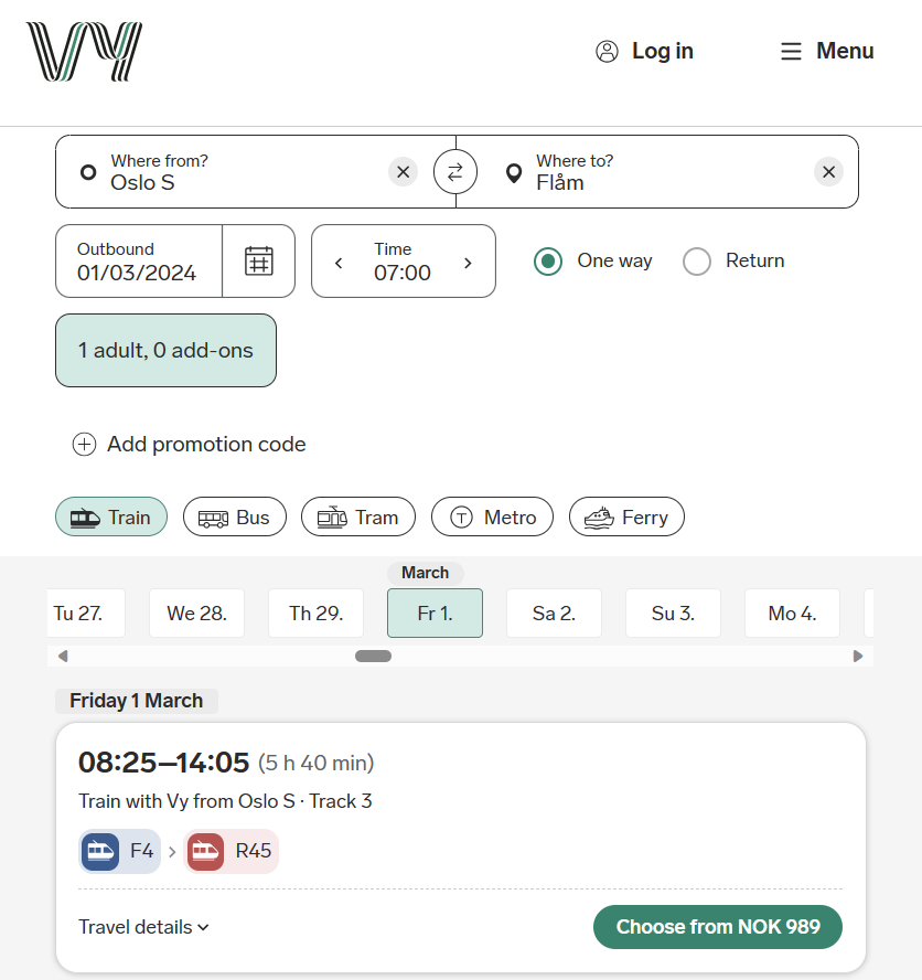• From : Oslo S → to : Flåm