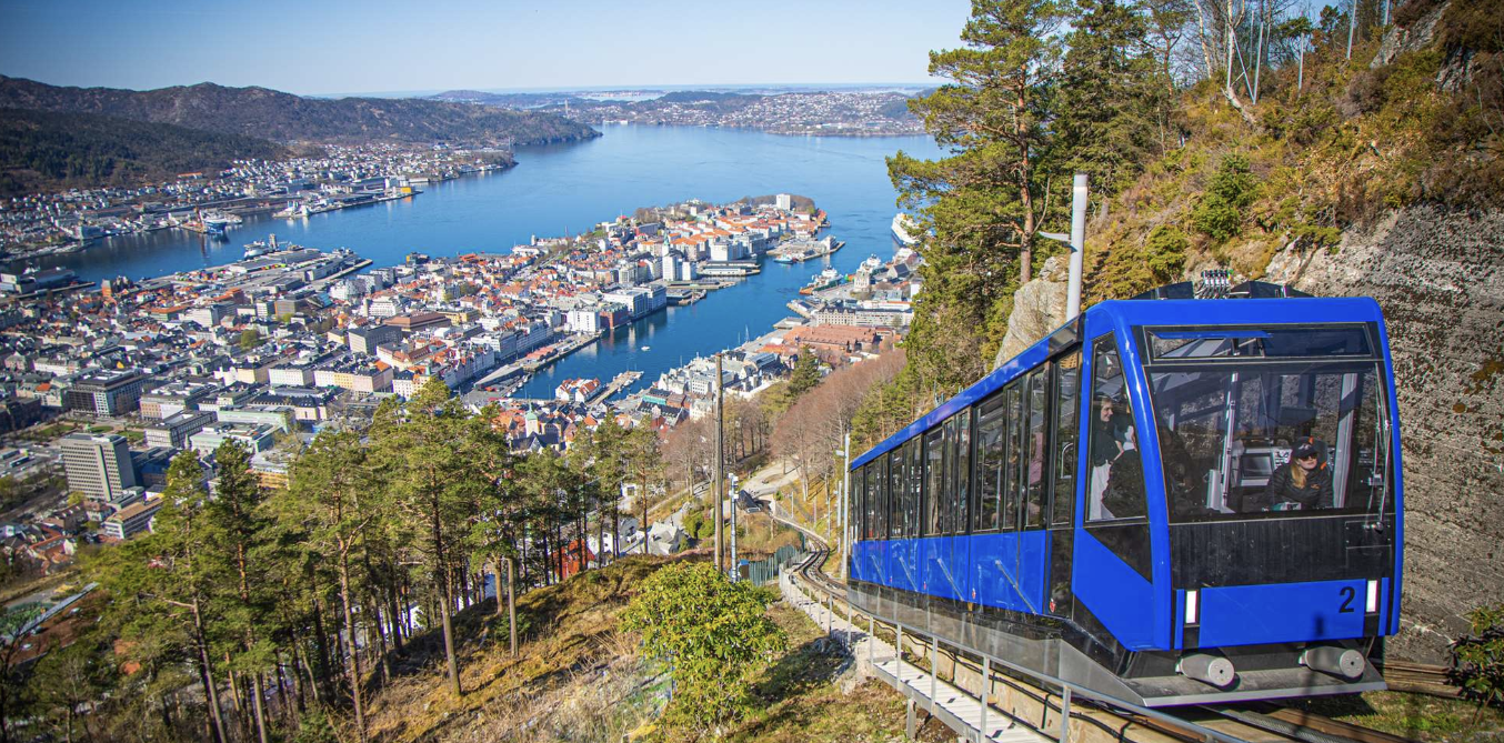 15분~30분에 한 대씩 운영하는 등산열차로 약 10분 소요됩니다. 이곳은 베르겐 시내의 전망과 일몰을 볼 수 있는 전망대입니다.