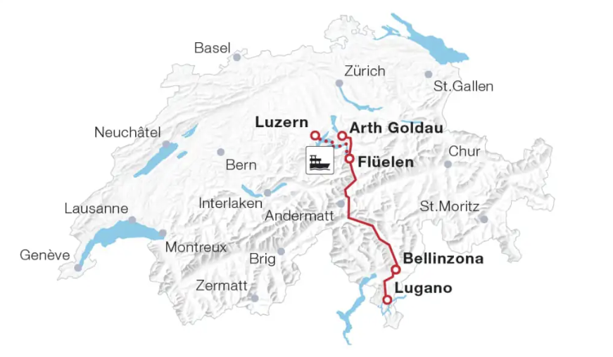 루체른부터 루가노를 연결하는 특급열차로