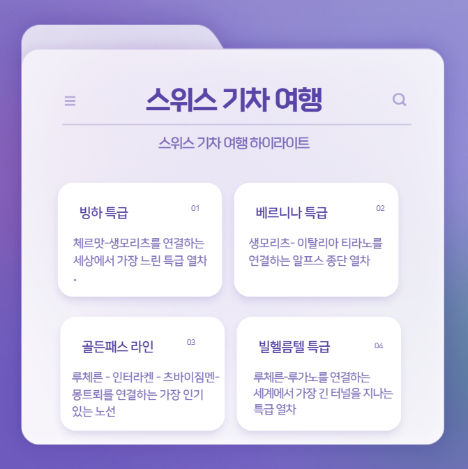 풍경을 즐길 수 있는 4대 풍경 열차입니다.