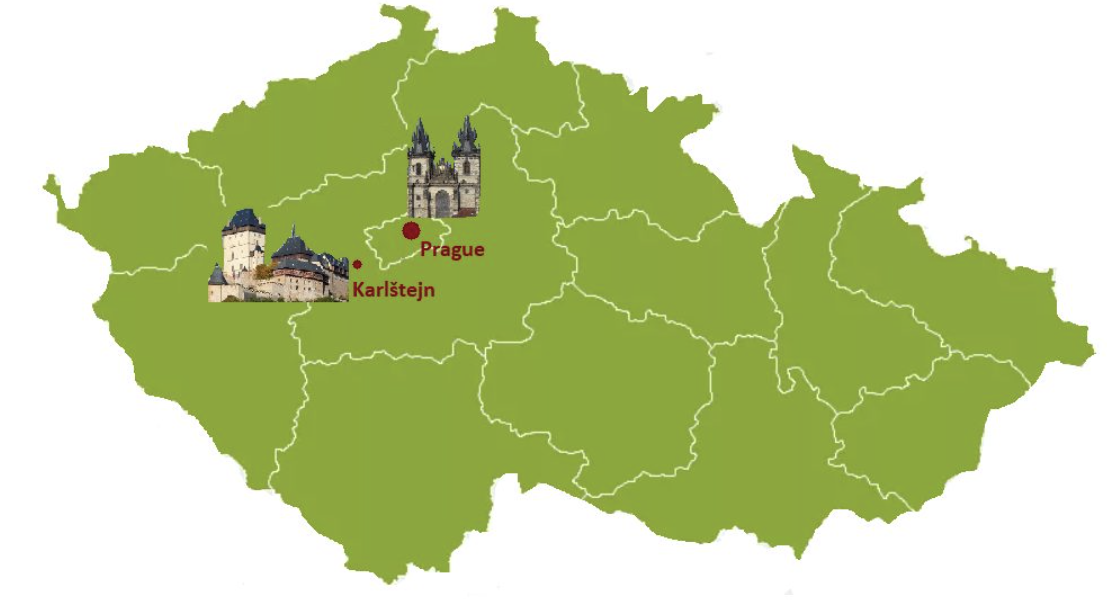 기차로 약 40분 정도 소요되는 거리에 위치해있으며, 체코의 중세시대 체코의 왕을 위해 만들어진 요새로 심신을 치유하고 왕실의 보물을 지키기 위해 사용된 성을 구경하실 수 있습니다.