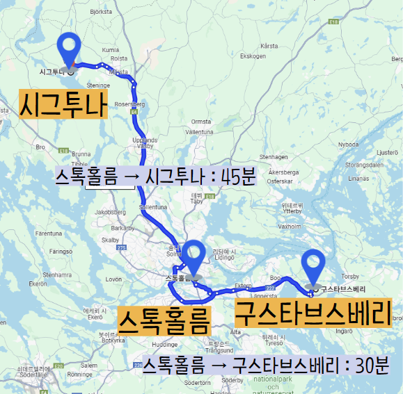 3탄에서는 스톡홀름에서 20분~2시간 거리에 위치한 근교 여행지에 대해 소개드리겠습니다.
