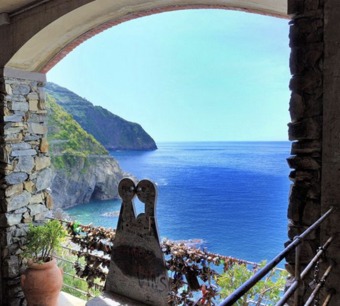리오마조레 → 마니롤라를 잇는 절벽 길로 편안하게 산책할 수 있는 코스입니다. 산책길에는 벽화가 그려진 담벽과 '사랑의 의자'가 있으며 그 앞에는 수많은 사랑의 자물쇠가 채워져 있습니다.