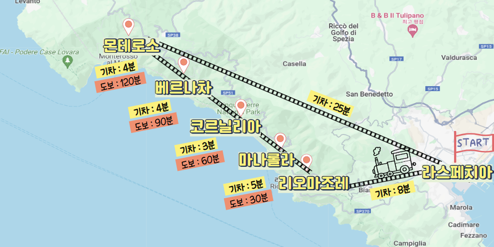 - 라스페치아 → 리오마조레 (소요시간 : 기차 8분)