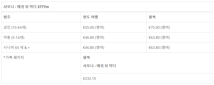 - 이동 방법 : 샤모니 중심가 (Gare du Montenvers)에서 Montenvers 기차를 타고 이동합니다.