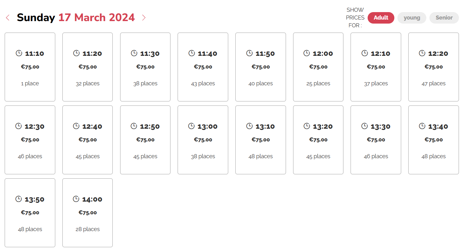 가격 편도 55유로, 왕 75유로이며, 10분 간격으로 운행하고 있습니다.
