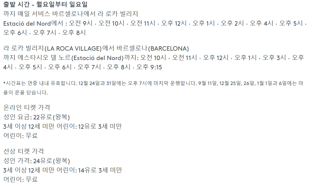 La Roca Village는 100개 이상의 디자이너 아울렛 매장과, 카페, 레스토랑이 있는 쇼핑몰 입니다. 바르셀로나 외각에 위치해 있으며, 버스로는 약 30분 소요됩니다.