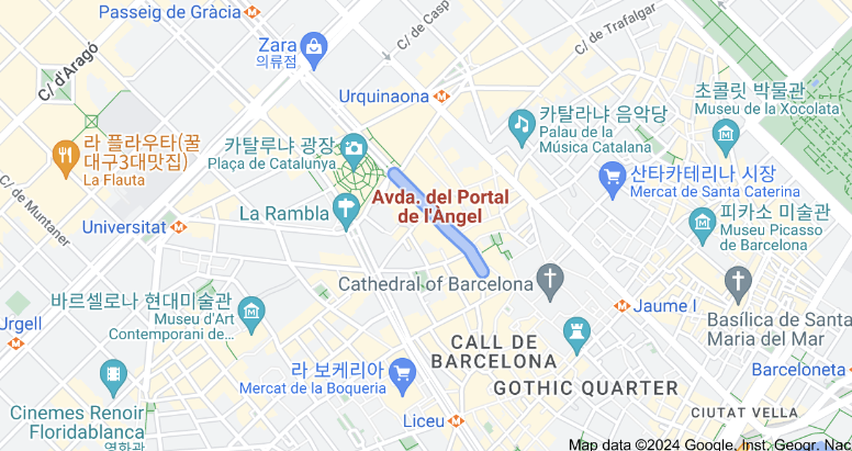 카탈루냐 광장에서 시작하여 고딕 지구로 이어지는 쇼핑거리로, 바르셀로나에서 가장 붐비는 거리 중 한 곳입니다.