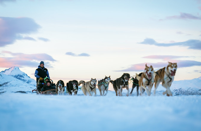 개 썰매를 타며 노르웨이 북부 알프스의 멋진 경치를 감상할 수 있는 체험입니다.