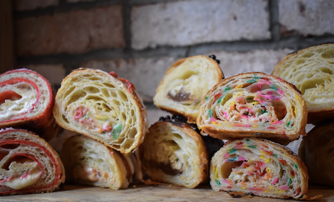 샌드위치와 레드벨벳, 딸기 치즈 케이크, 티라미수 등을 채운 크루아상을 포함해 갓 구운 베이커리류를 제공하고 있습니다.