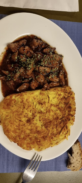 메뉴 : schweinsgeschnetzeltes + Rosti // 얇게 썰은 돼지고기 + 뢰스티 (감자전)