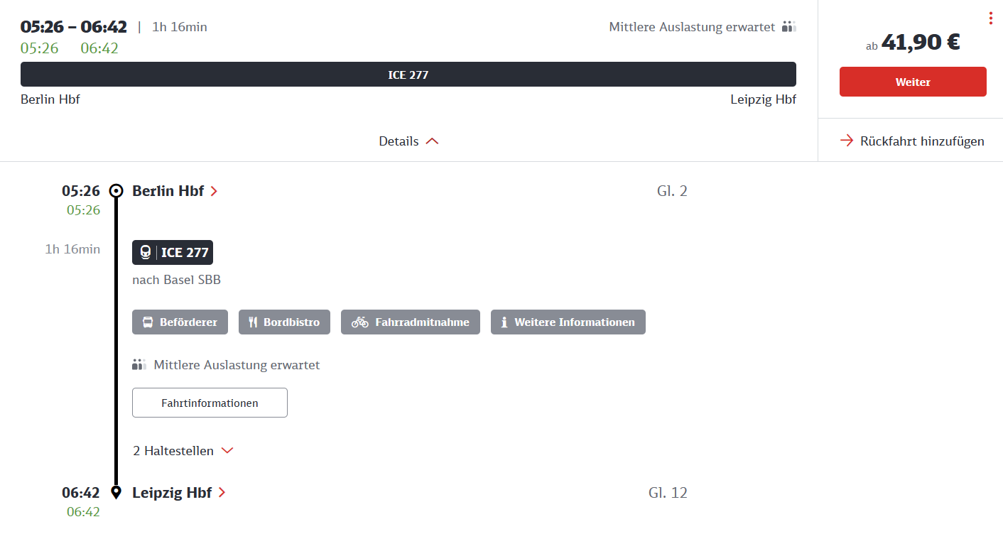 - 열차 : 베를린 중앙역 → 라이프치히 중앙역