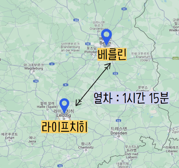 - 프랑크푸르트 → 라이프치히 : 3시간 소요