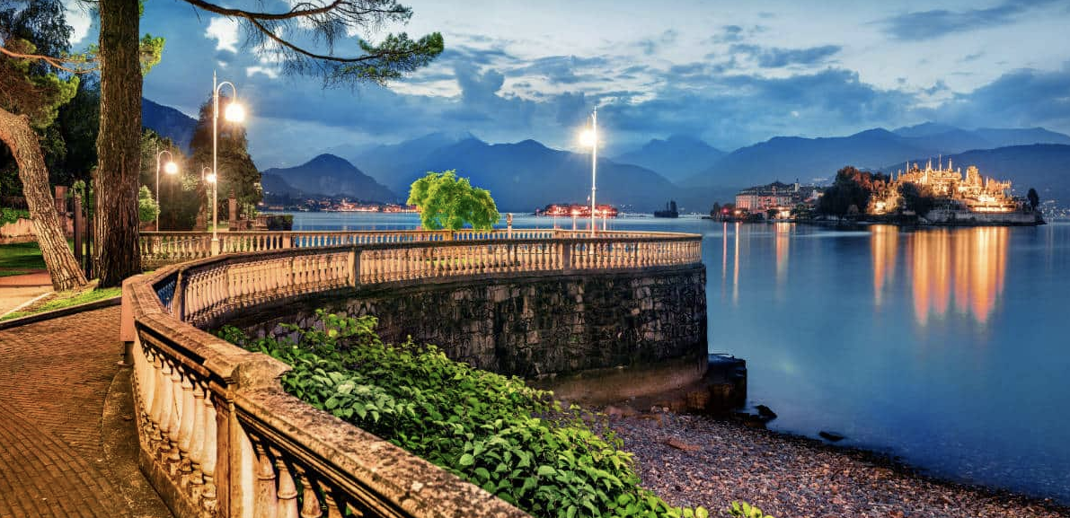 마조레 호수 중심의 최고급 리조트가 조상된 마을로, 호수를 따라 품격 있는 리조트 호텔들이 늘어서 있습니다.