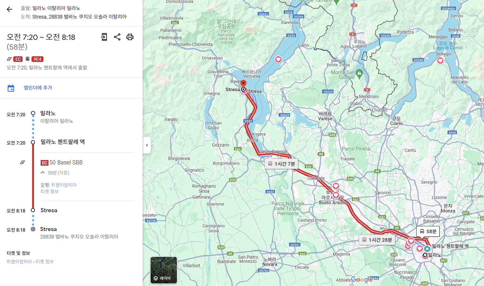 - 밀라노 첸트랄레 역 → Streasa 역 이동